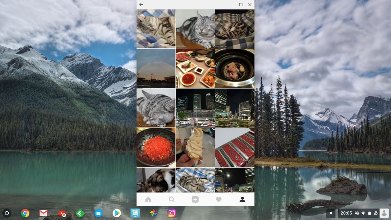 InstagramはタブレットモードやChromebookへの最適化が済んでいないようで、スマートフォン向けの表示とUIに限定されました。ちなみにここから投稿も可能で、カメラは先述の背面・前面両方が切り替え可能でした。
