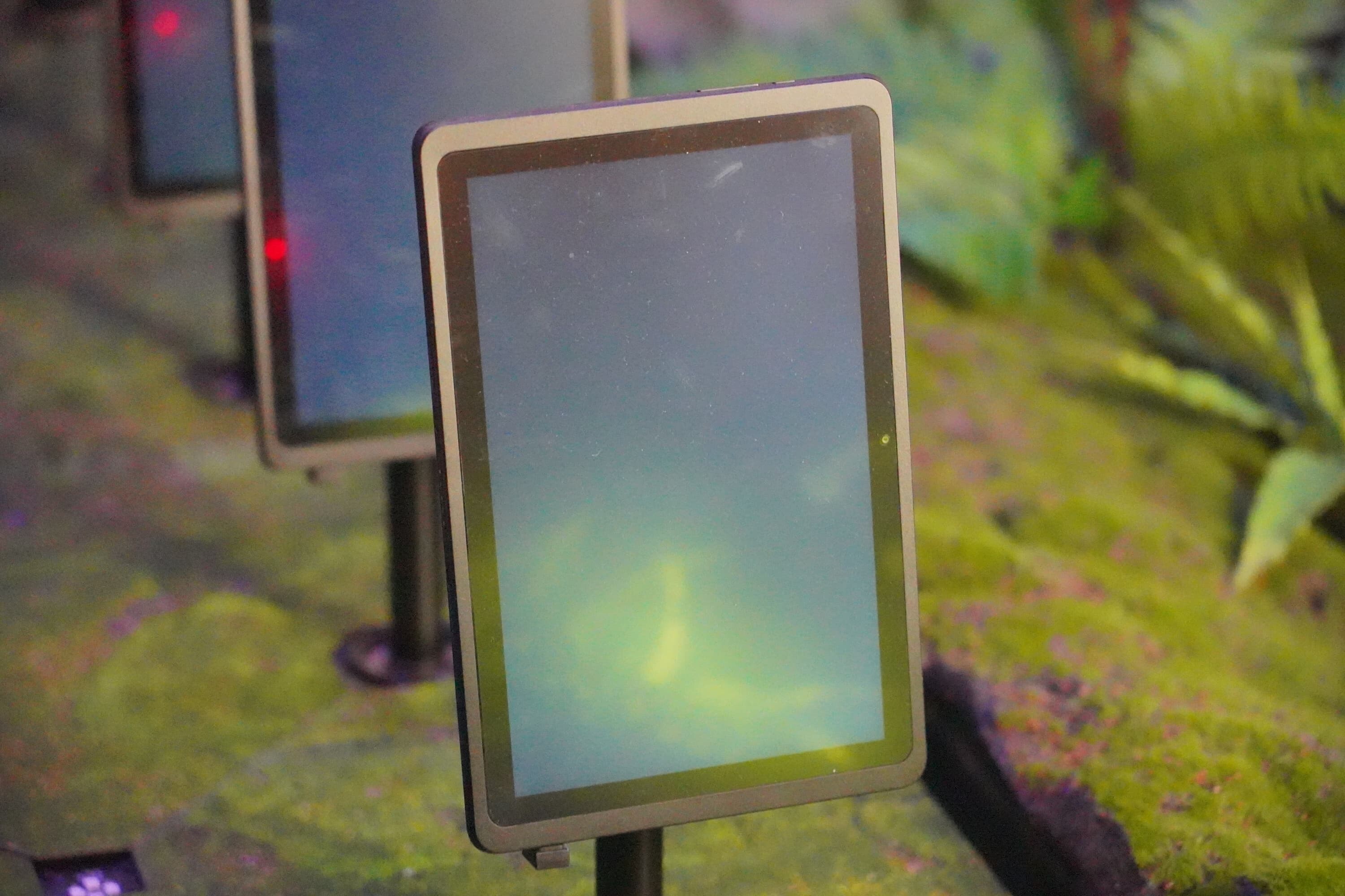 TECH WORLDの展示は「ライフ」「ネイチャー」「フューチャー」の3部構成。一番の見どころとなる最初のライフ劇場では560台のタブレットがロボットアームによって動き回り、高さ8mのツリー型スクリーンと連動して映像を映し出します。