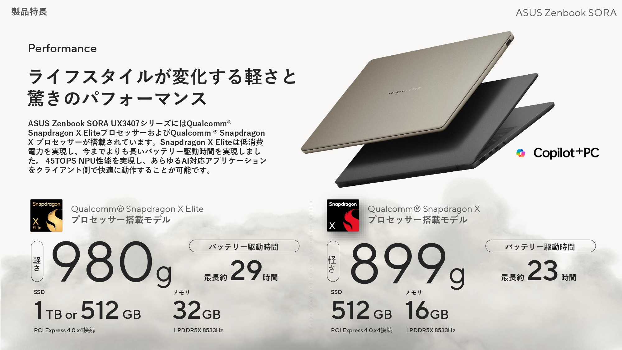 2025年、ASUSは日本市場での取り組みを一段と強めた印象です。ノートPCでは日本市場を徹底的に調査したうえで、日本向けとして開発された「Zenbook SORA」を投入し、製品づくりの方向性を明確に打ち出しました。