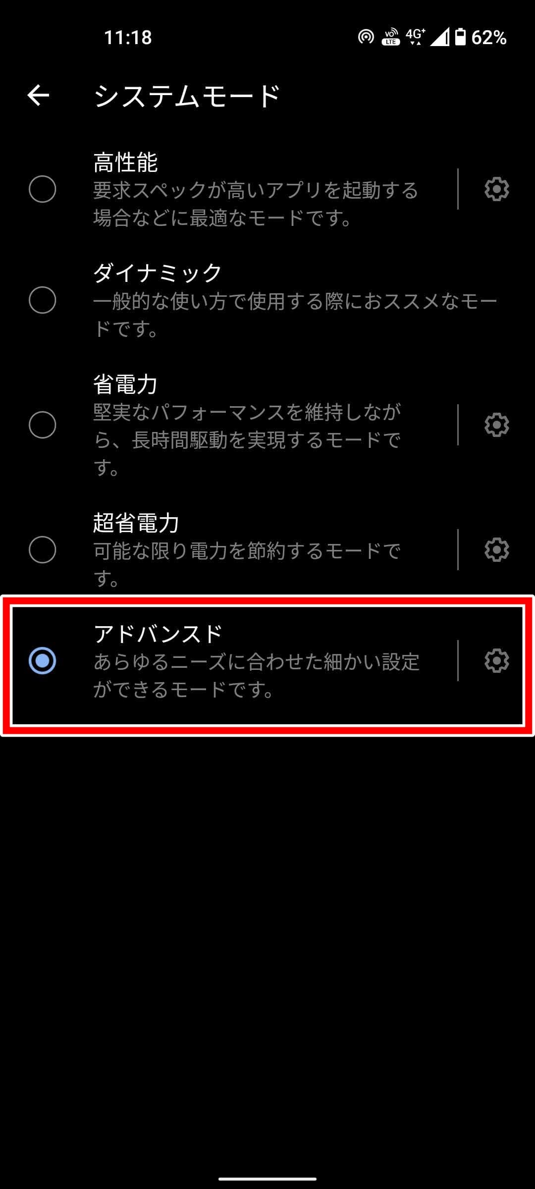 Zenfone 8に搭載されているシステムUI「ZenUI」はカスタマイズ性の高さが魅力です。電池持ちやパフォーマンスに直結するシステムモードにはまるでゲーミングスマホかのような細かい設定が可能な「アドバンスド」モードが用意されました。