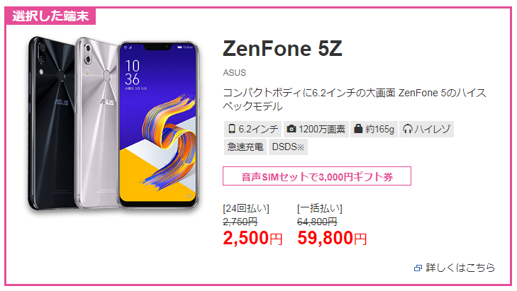 IIJmioサプライサービスはZenFone 5Z ZS620KLの価格改定を発表しました。従来より5000円安い5万9800円で販売中です。
